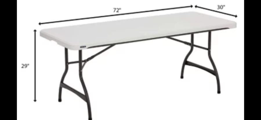 • 6Ft tables are based on 7-hour rental window.